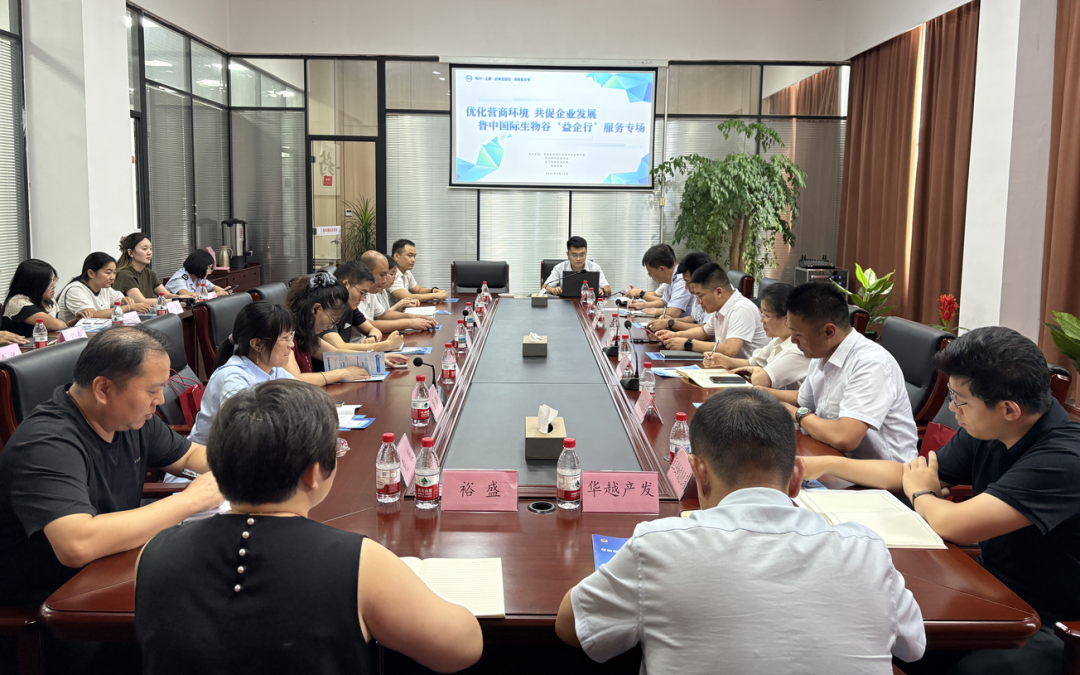 8月15日,济莱控股·嬴城产发鲁中国际生物谷“泉惠企”企业服务站成功举行“益企行”惠企服务直通车活动。作为鲁中国际生物谷园区深化“每月一主题 政策进园区 赋能新发展”系列活动的重要一环,本次活动由莱芜区行政审批服务局、莱芜区工业和信息化局、莱芜区税务局相关负责人携业务骨干,联合北京银行、华越(山东)产发集团等服务机构,共计二十余人参加,与园区内企业负责人面对面,直击企业发展堵点,打通政策落地“最后一公里”。